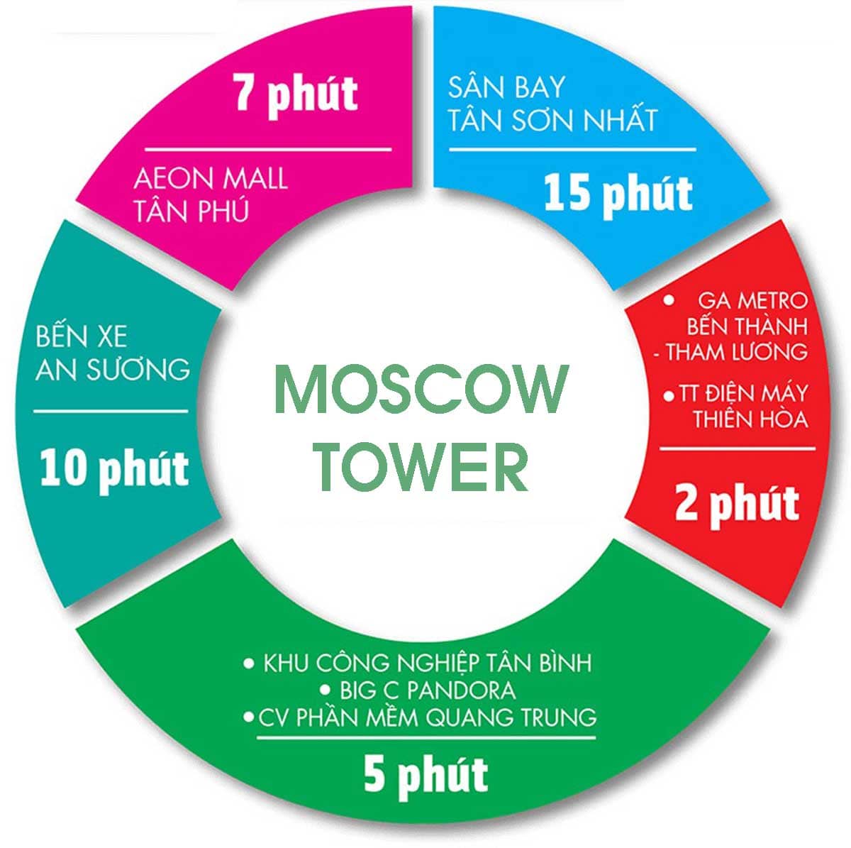 Nhờ nằm gần tuyến đường Trường Chinh, trục đường kết nối khu Bắc Tp.HCM với các quận trung tâm nên từ Moscow Tower di chuyển thuận tiện đến các quận (11, Tân Phú, Bình Tân, Gò Vấp, Bình Thạnh,…)