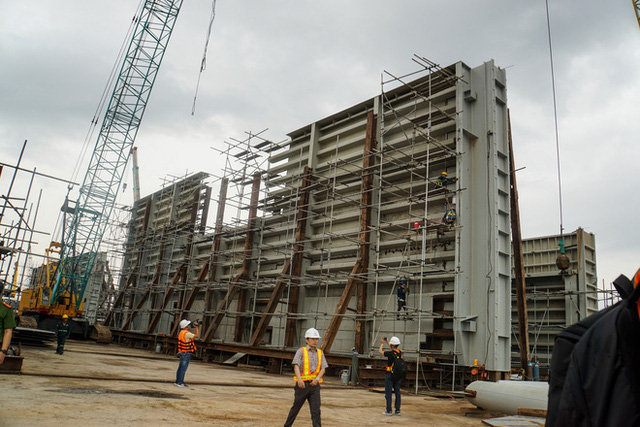 Công trình đã hoàn thành thi công âu thuyền đến 3.5m, thi công xong trụ T2 và tháp van T2, T3, dầm van T2-3.
