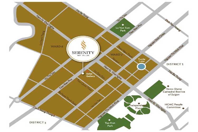 Tọa lạc tại vị trí đắc địa nhất của Quận 3, Serenity Sky Villas là một trong những dự án cao cấp được mong chờ nhất tại Thành phố Hồ Chí Minh. Với một vị trí trung tâm, cư dân của Serenity Sky Villas có thể dễ dàng di chuyển đến các điểm đến quan trọng trong thành phố như Quận 1, Quận 5, Quận 10, khu trung tâm thương mại, bệnh viện, trường học, các khu vui chơi giải trí và ẩm thực.