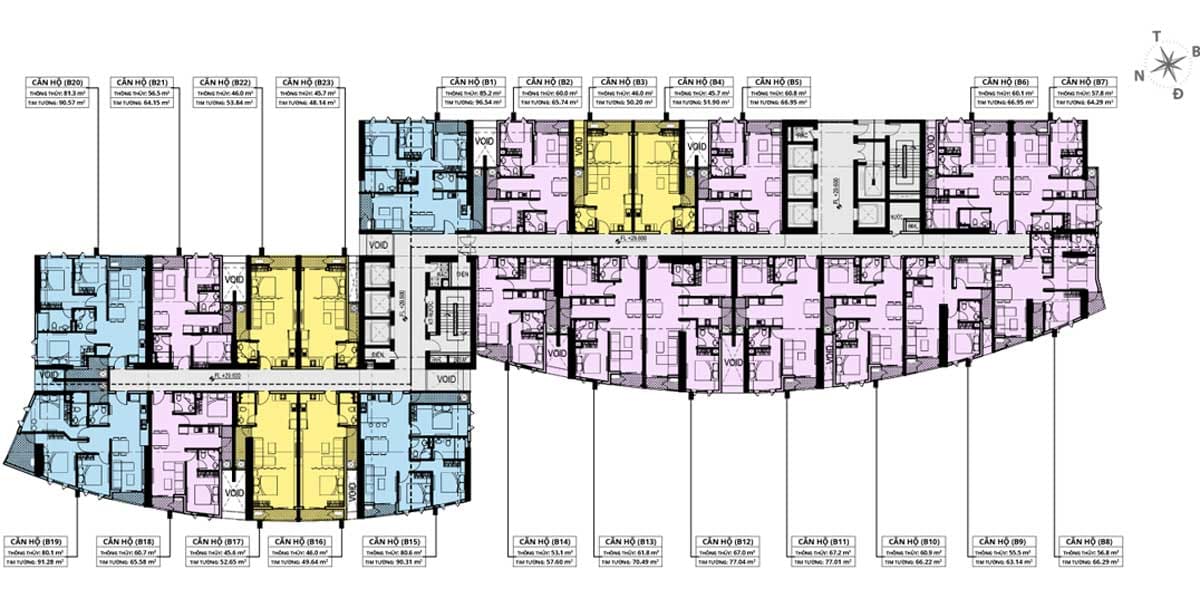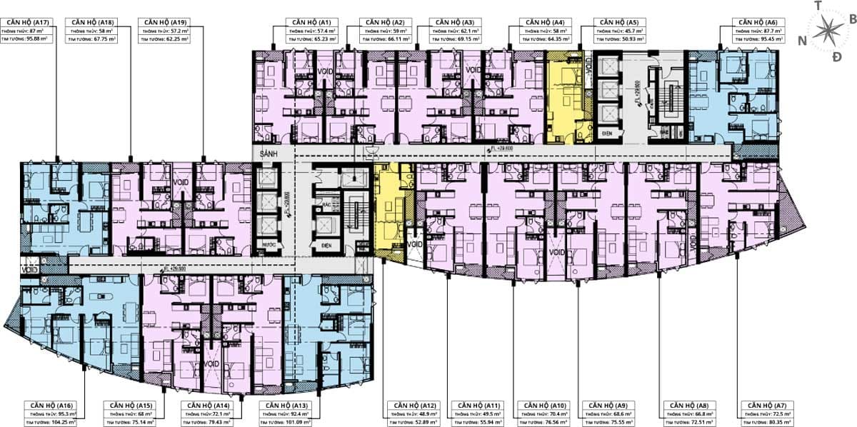 · Diện tích: Từ 50.93 – 104.25 m2