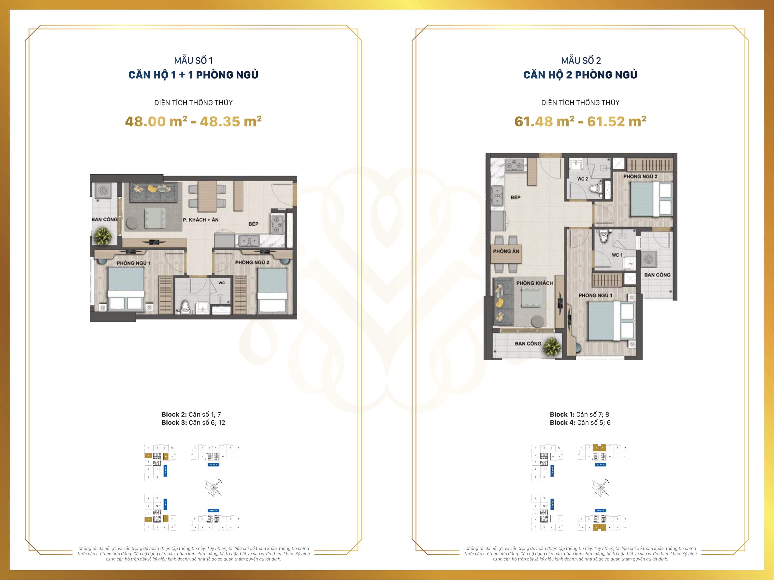 Căn hộ 01 PN: từ 3 tỷ 4 / căn