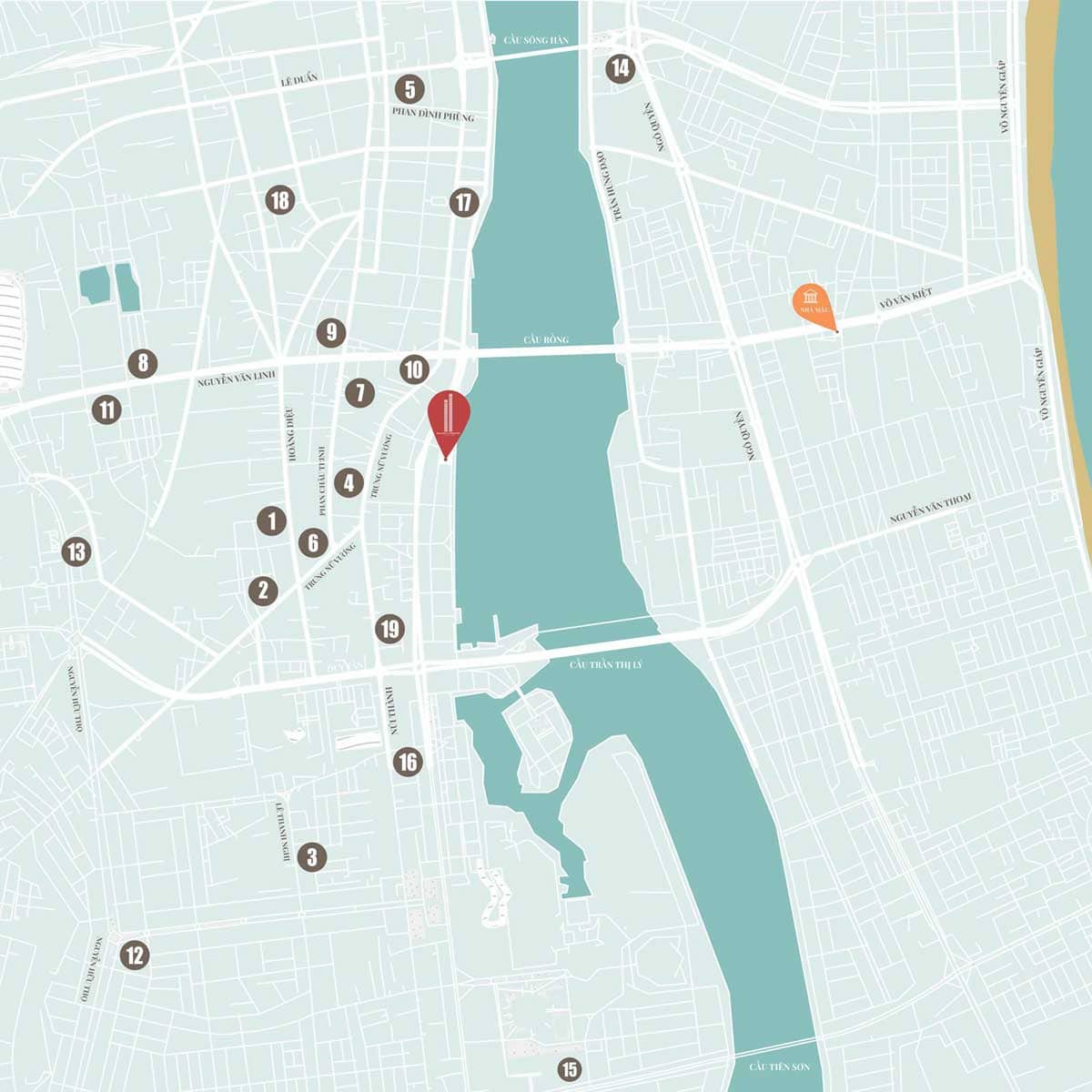 Với vị trí đắc địa tại cung đường Bạch Đằng – trục đường du lịch nổi tiếng của Đà Nẵng với phố đi bộ về đêm và nhiều tòa nhà cao tầng, khách sạn 5 sao, Đà Nẵng Landmark Tower thật sự là một kim cương giữa lòng thành phố. Về phía đông là sông Hàn, phía bắc là công viên APEC và phía nam lần lượt giáp đường Bình Minh 5 & Trần Văn Trí: trung tâm của nhà hàng, dịch vụ… chỉ 100m kết nối đến đường 02/09 – con đường liên kết các điểm đến thú vị: Biểu tàng Chăm, Công viên Châu Á, cung thiếu nhi, trung tâm giải trí & chợ đêm Helio, trung tâm tài chính đường Nguyễn Văn Linh.