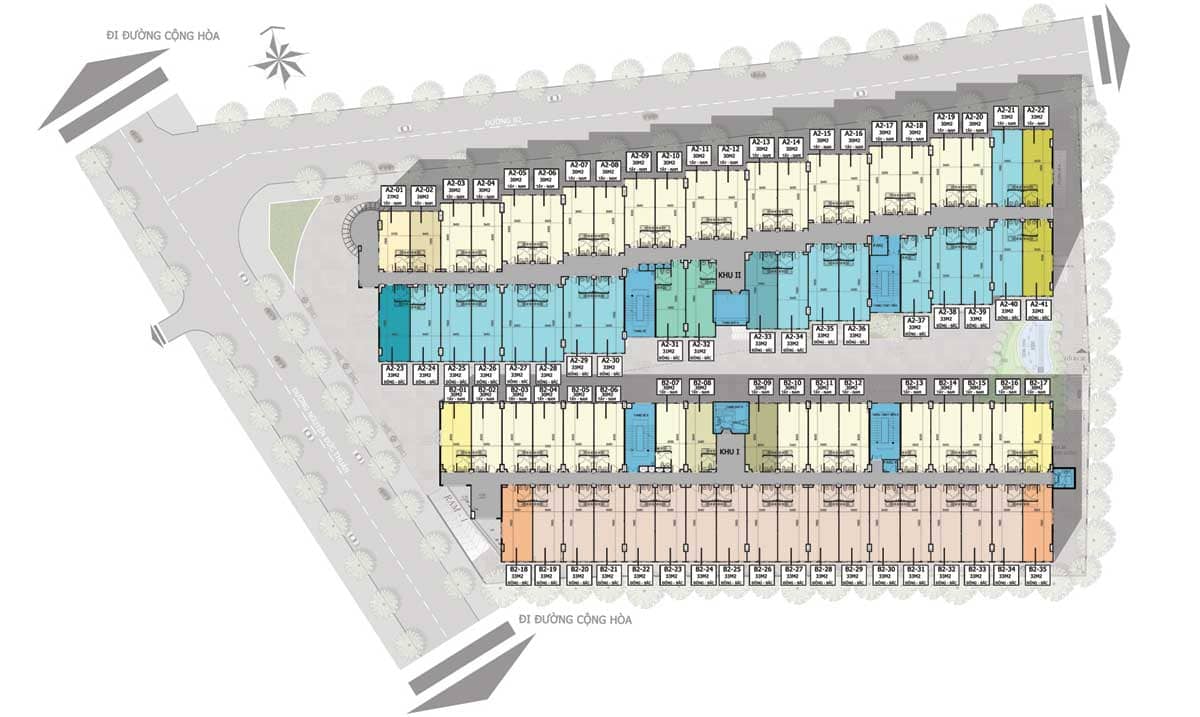 Hầu hết các căn hộ của dự án Diyas Complex là các căn hộ dạng studio, tức là các căn hộ có diện tích nhỏ vừa. Các căn hộ mang thiết kế vuông vức và được bố trí lệch nhau để hút không khí tự nhiên từ bên ngoài vào bên trong căn hộ. Tạo điều kiện cho ánh sáng mặt trời chiếu sáng vào ban ngày và có thể đối lưu không khí cân bằng với thiên nhiên.