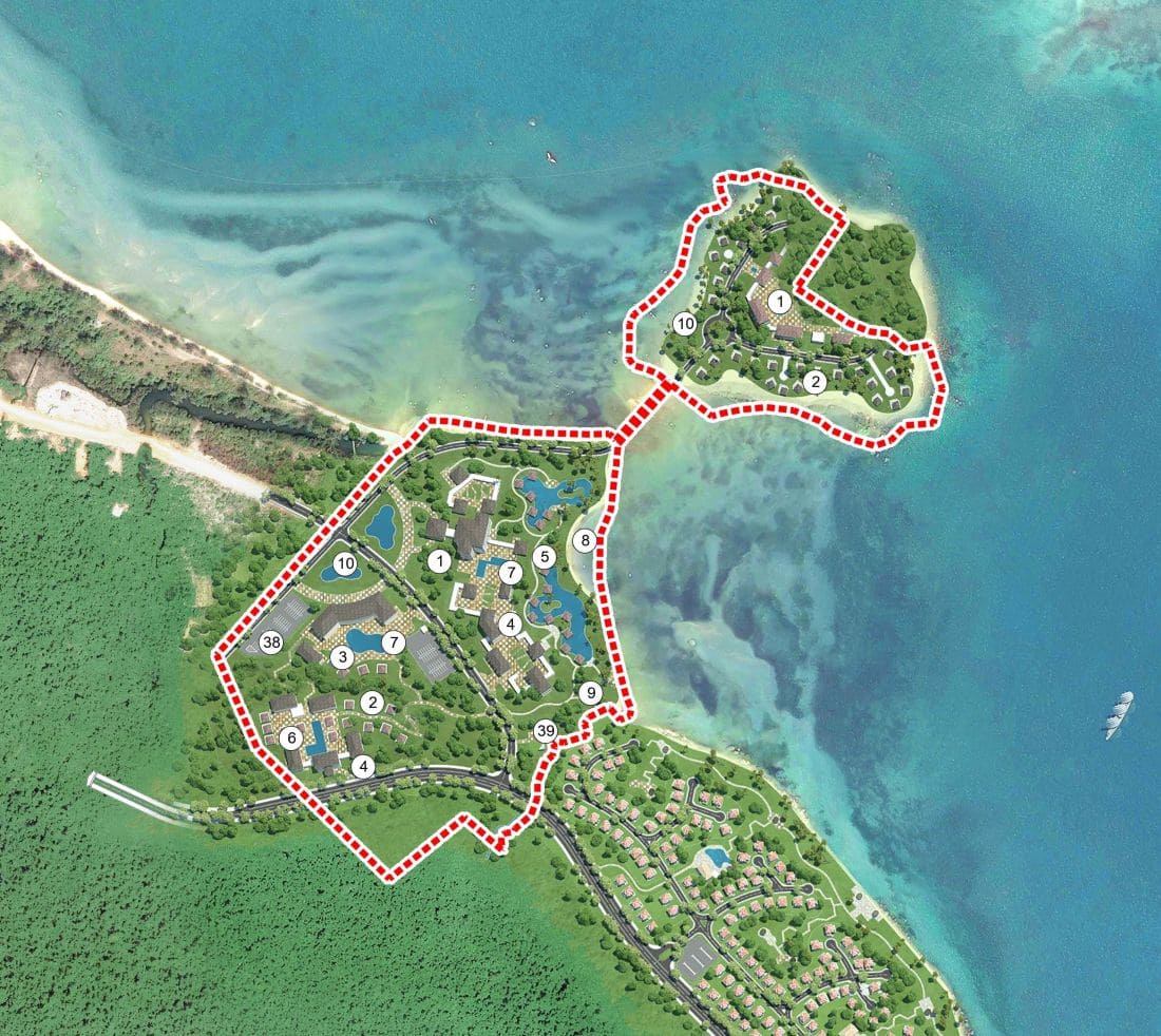 Khách sạn và khu nghỉ dưỡng condotel Phú Quốc của dự án bao gồm một khách sạn 350 phòng hạng xa xỉ với trung tâm hội thảo quốc tế, một khu nghỉ dưỡng 160 phòng hạng cao cấp và một khu nghỉ dưỡng 90 phòng hạng xa xỉ. Khu cư trú dài hạn của dự án bao gồm 40 biệt thự Phú Quốc hạng xa xỉ có vườn riêng và 120 căn hộ được quản lý bởi nhà điều hành phân khúc cao cấp.