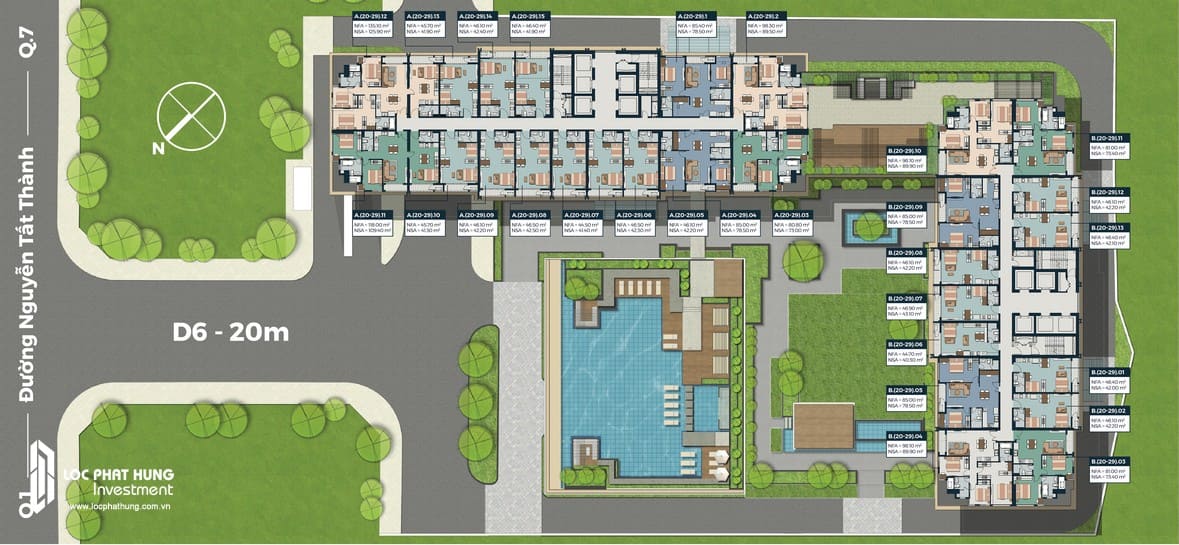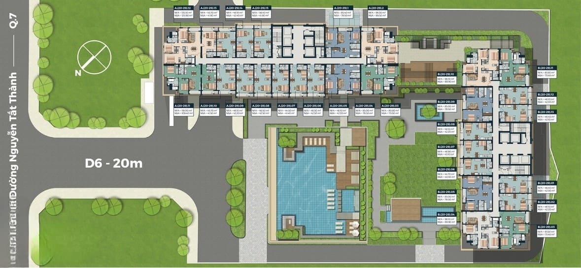 Ngoài các căn hộ cao cấp, dự án còn có shophouse thương mại ở 5 tầng khối đế và số lượng giới hạn các căn penthouse thượng lưu. Khi bàn giao, dự án lên kế hoạch đưa vào khai thác các căn hộ và shophouse.