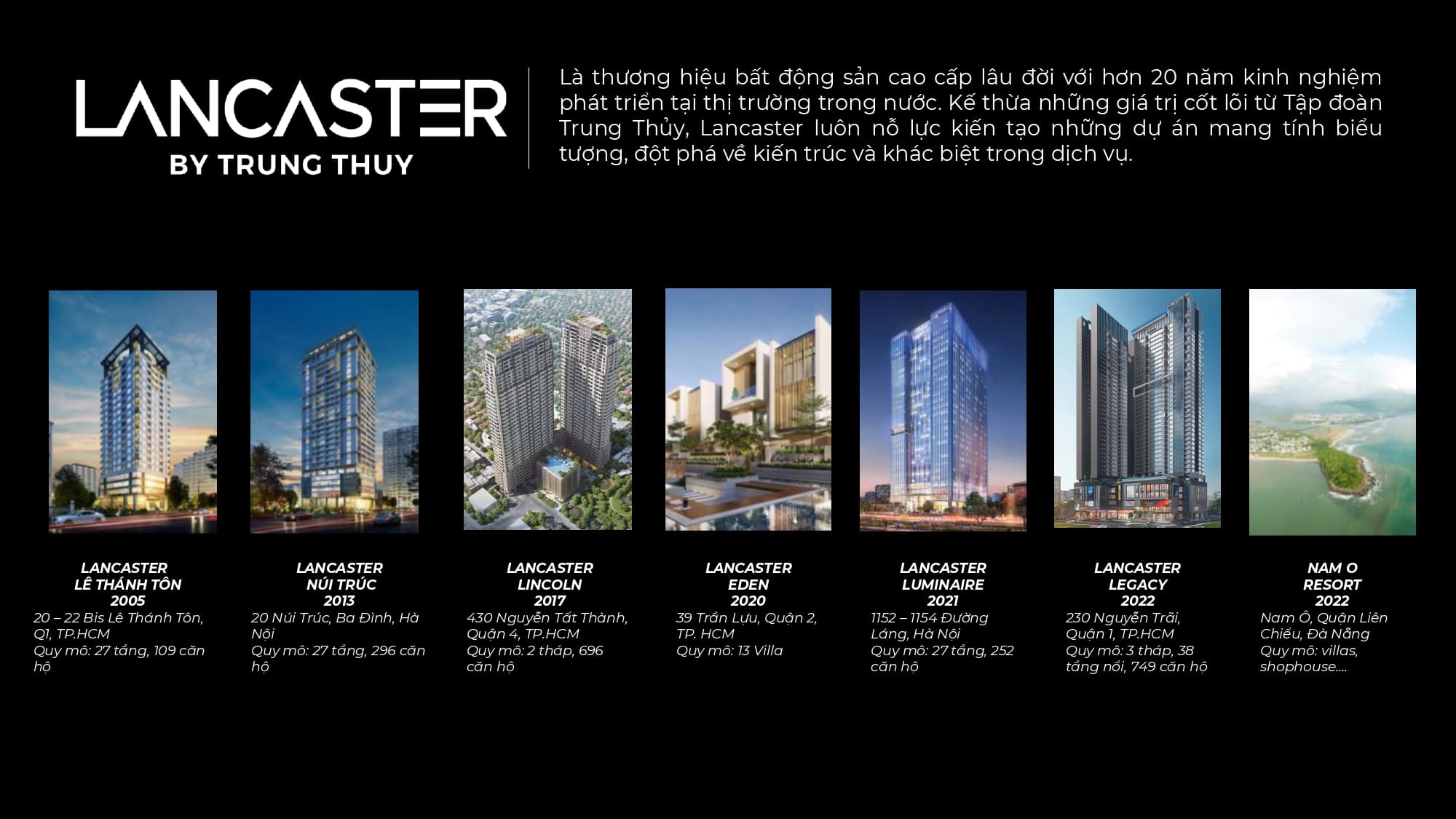 Dự án Lancaster Legacy được phát triển bởi Tập đoàn Trung Thủy, một trong những tập đoàn bất động sản uy tín hàng đầu Việt Nam, với đội ngũ chuyên gia giàu kinh nghiệm và tâm huyết.