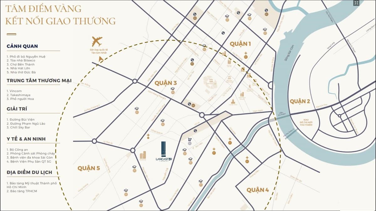 Vị trí dự án Lancaster Legacy được xem là rất đắc địa khi nằm tại trung tâm Quận 1, gần các trục đường lớn như Đường Nguyễn Trãi, Đường Võ Văn Kiệt, Đường Lê Hồng Phong,.. giúp cư dân dễ dàng di chuyển đến các khu vực khác trong thành phố.