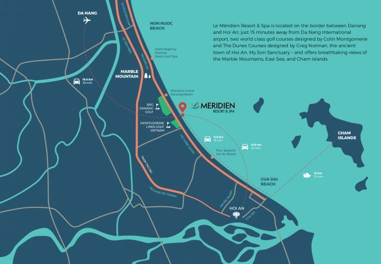 Dự án Le Meridien Đà Nẵng- lấy từ cột mốc kilomet số 0 hoàn chỉnh trải dài theo hướng eo biển đến với Quảng Nam có một vị trí kim cương, độc tôn duy nhất, nằm trải dài trên hơn 12ha bãi biển Non Nước. Từ sinh sống đến nghỉ dưỡng và vui chơi ở Le Meridien Đà Nẵng, là cơ hội tuyệt vời trong đời của quý khách để chiêm ngưỡng toàn cảnh thiên nhiên, view biển mà tất cả các tạp chí trên thế giới đều thừa nhận nơi này là “bồng lai thiên cảnh” với vẻ đẹp ngút ngàn. Le Meridien rồi sẽ nổi tiếng và xứng đáng với tên gọi trung tâm của thành phố được ví như là Singapore của Việt Nam.