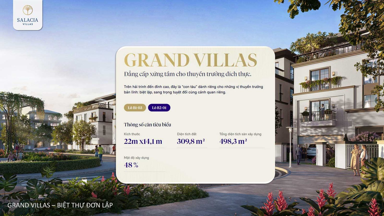 | Grand Villa (Biệt thự đơn lập) | 297 – 412 m² | Từ 16 Tỷ |